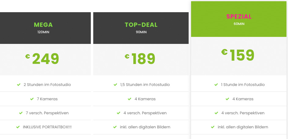 Viele Hintergründe und professionelles Licht-Setup mit 100% Spaßfaktor!